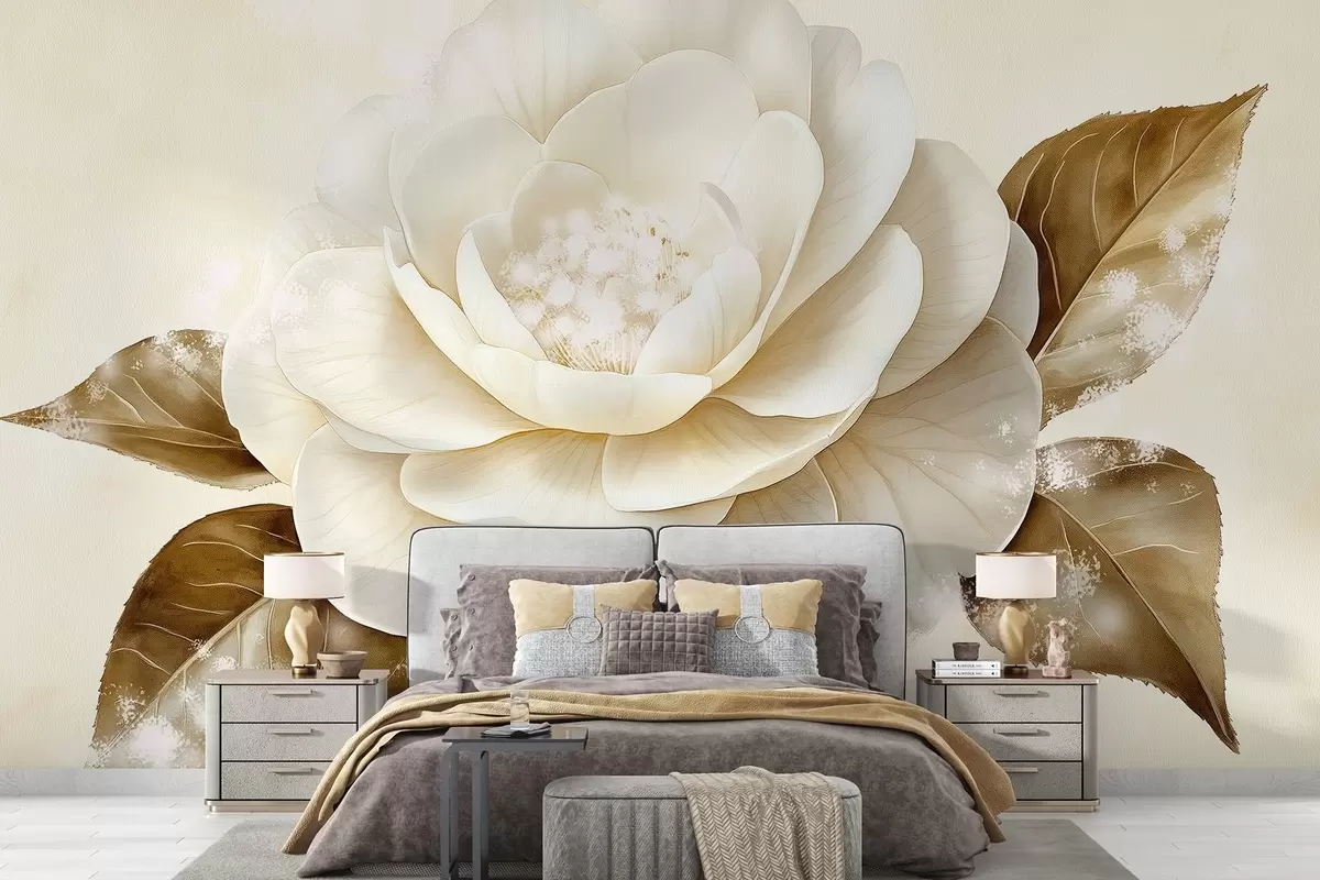 Wall murals Beautiful peony flower in beige colors Nr. w03757