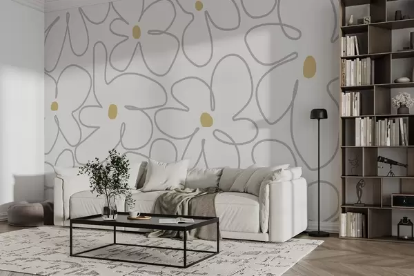 Wall murals Minimalistic flowers line art in light colours Nr. w03812