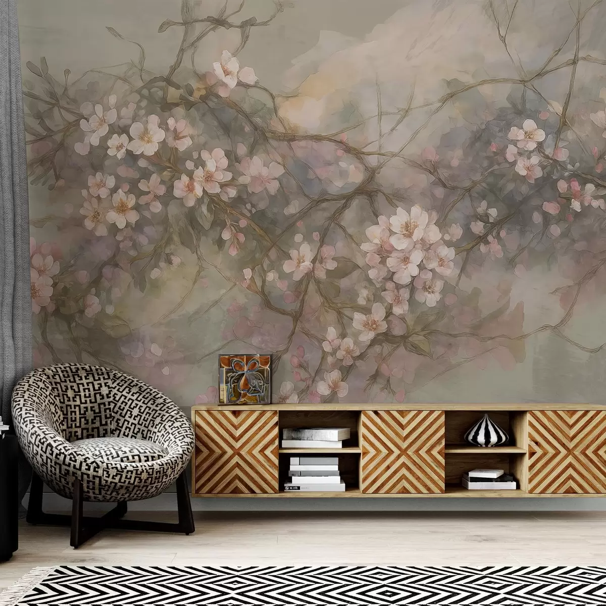 Wall murals Watercolor abstract branches with flowers Nr. w03815