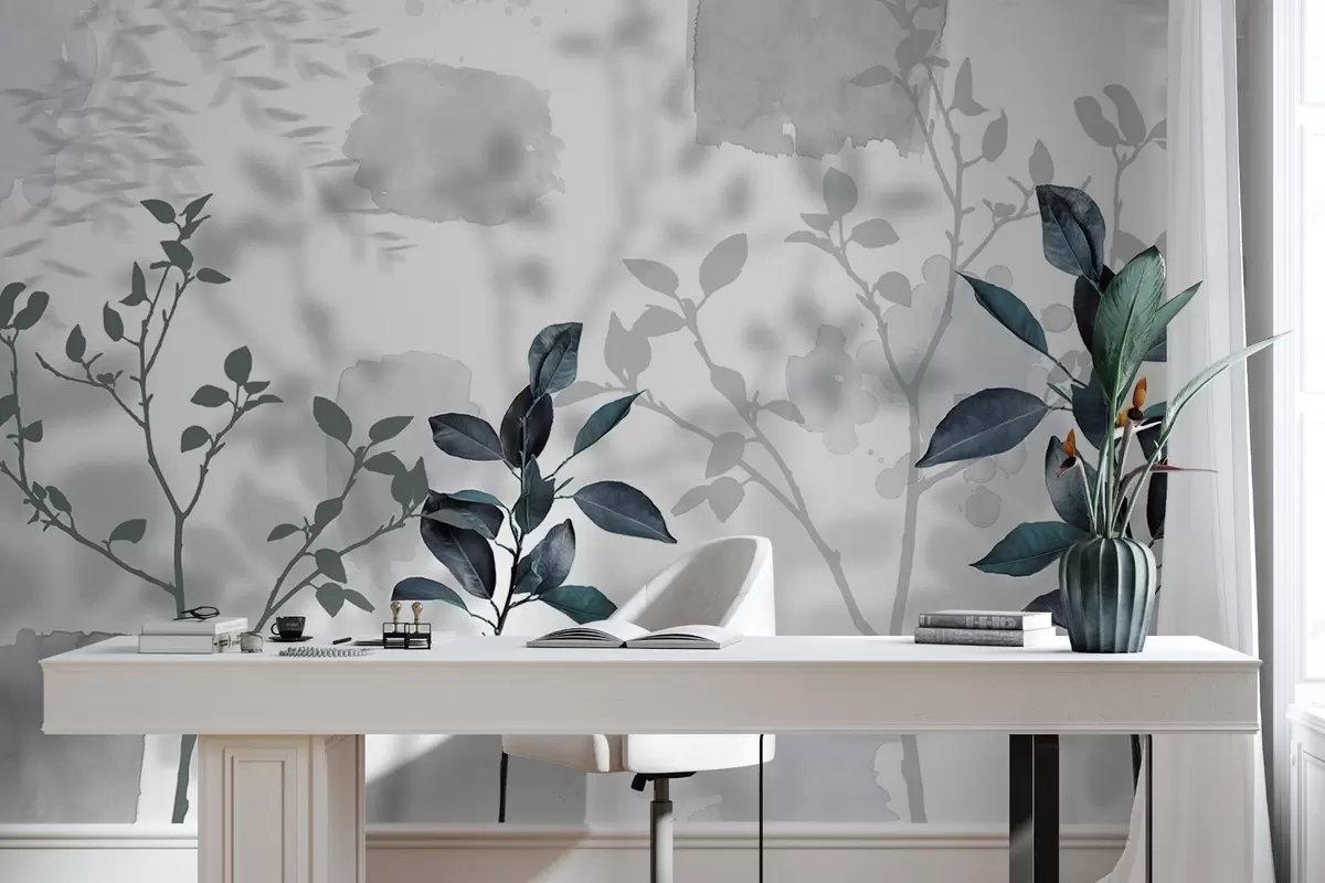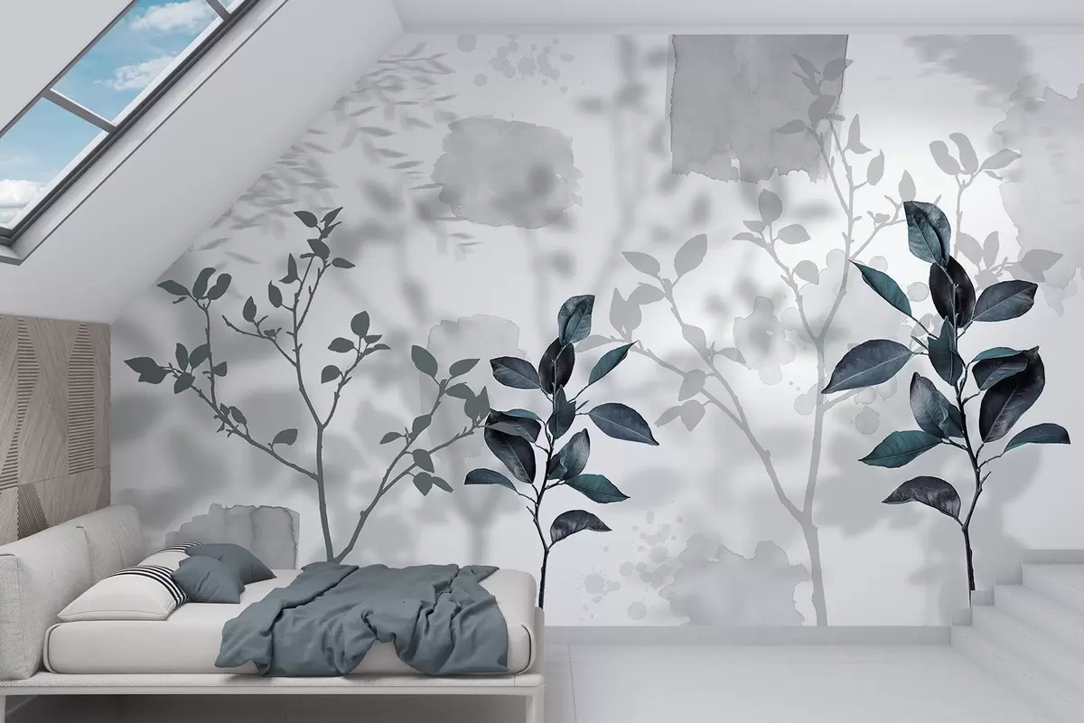 Wall murals Lemon tree leaves, tree branches shadows, nature, watercolor, blue Nr. w03910v2