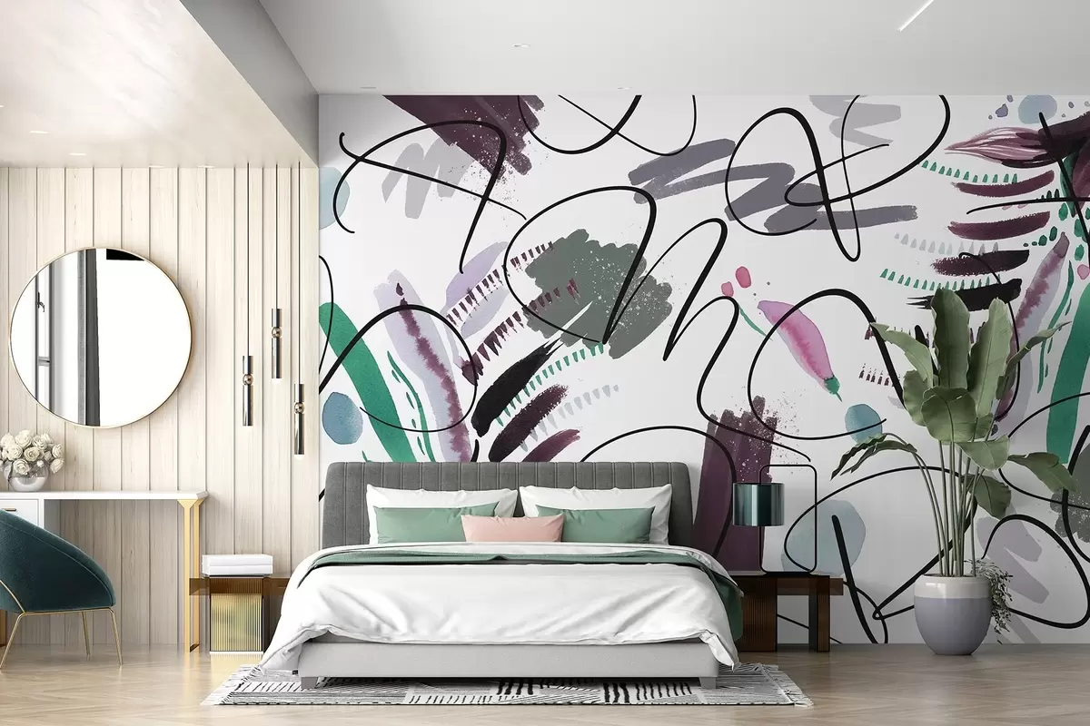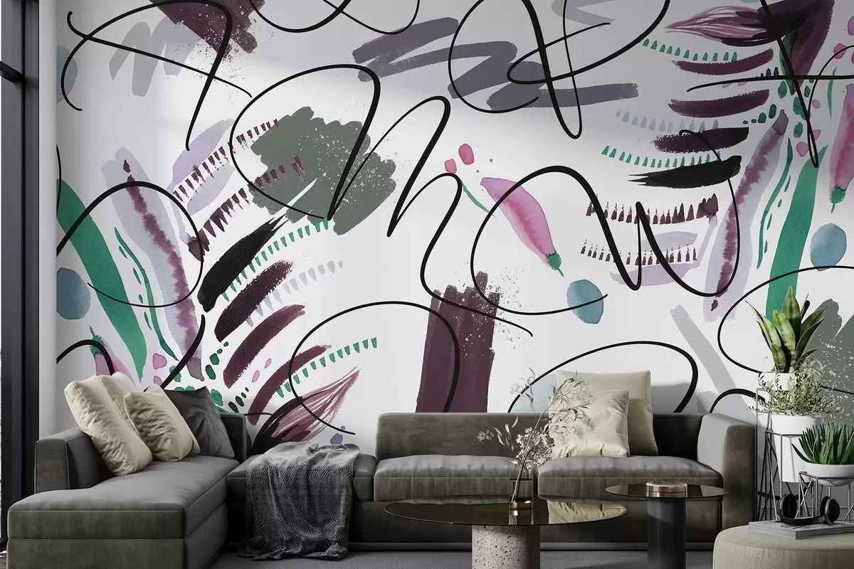 Wall murals Ink letters, calligraphy, brush strokes, pastel colors, abstraction Nr. w03912v1