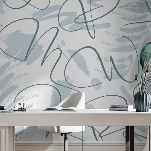 Wall murals Calligraphic abstraction with letters, brush strokes, blue color Nr. w03913v1