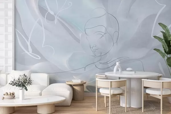Wall murals Floral abstraction with Buddha line drawing, blue colors Nr. w04004v1