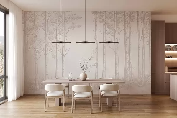 Wall murals Forest with birch trees, minimalism, nature, beige color palette Nr. w04009v3