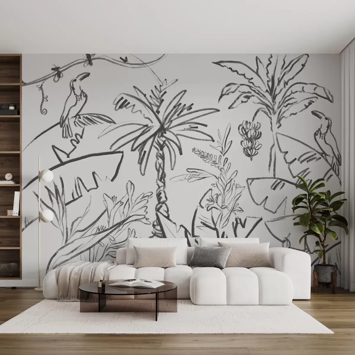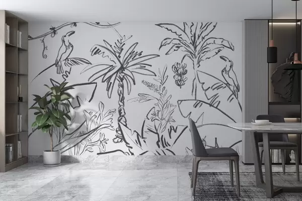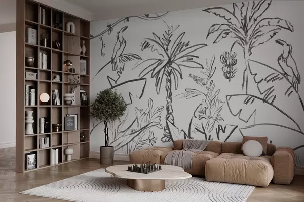 Wall murals Tropical line drawing, bananas, palm trees, outline graphics Nr. w04020