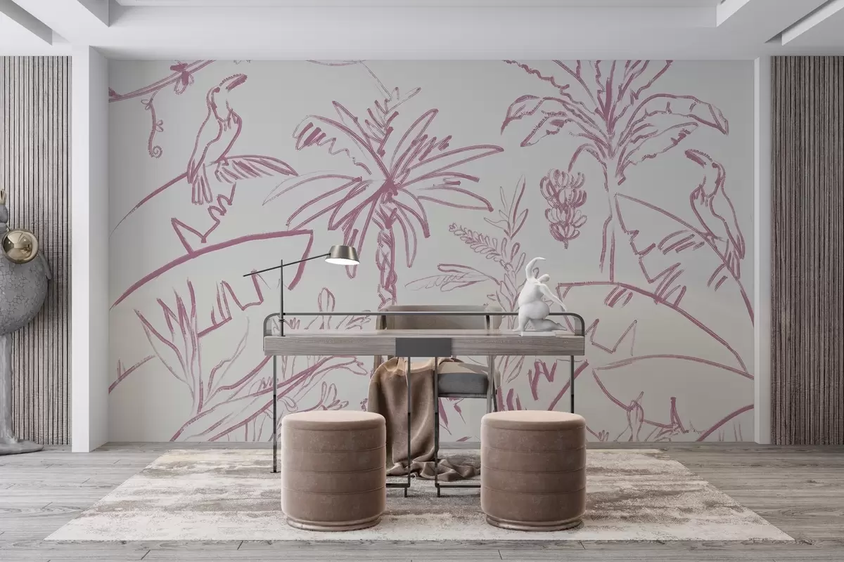 Wall murals Tropical lines in pink, tropical plants, bananas Nr. w04020v2