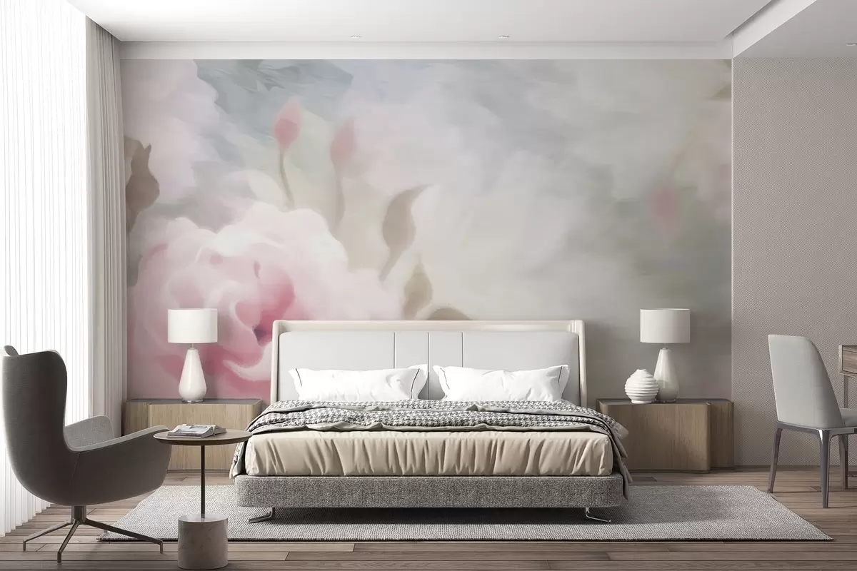 Wall murals Peony flowers on a blurred background Nr. w04046