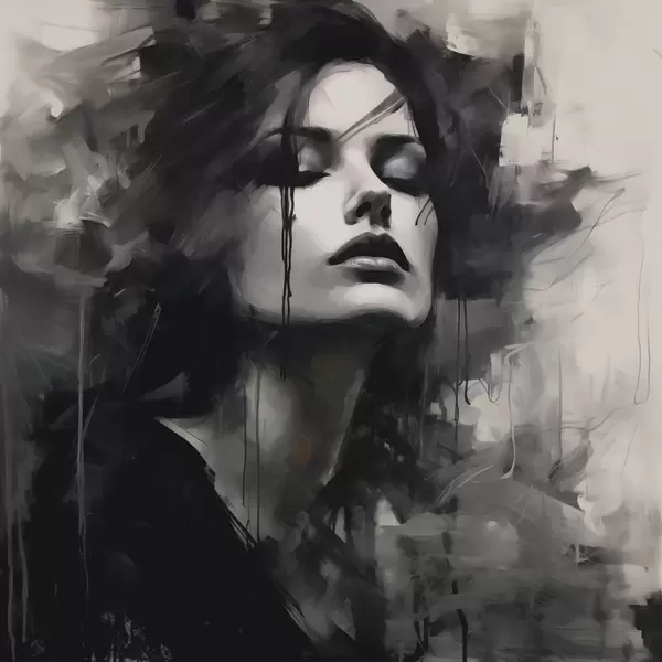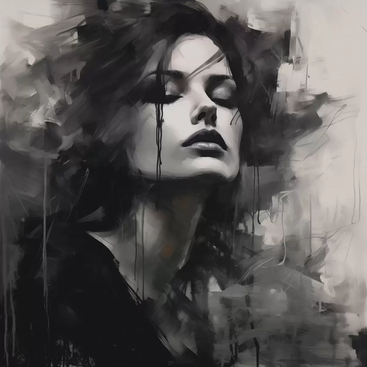 Wall murals Portrait of a woman in gray and black garments Nr. w04049