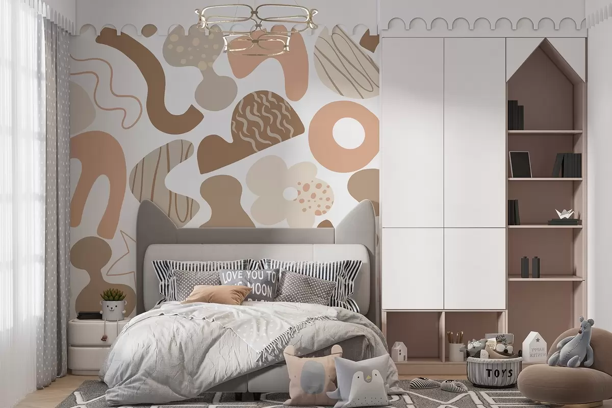 Wall murals Geometric figures with doodles drawing, juvenile, beige color palette Nr. w04068