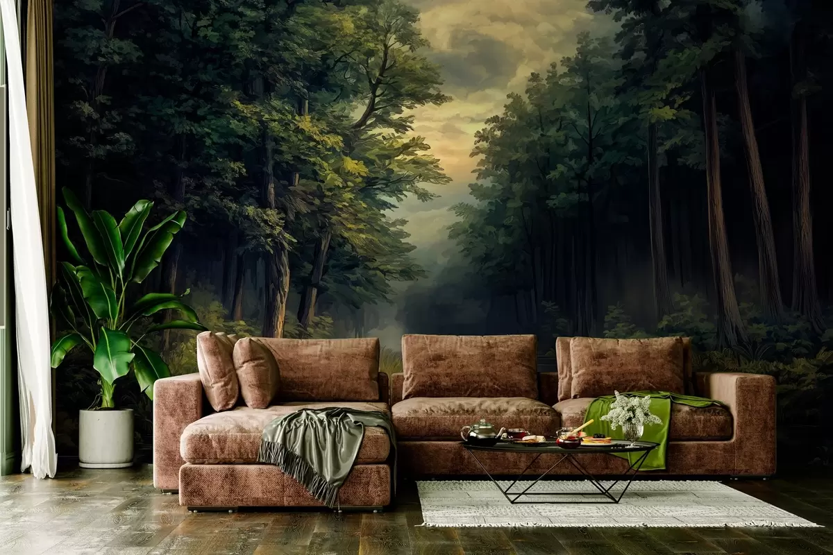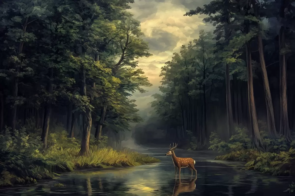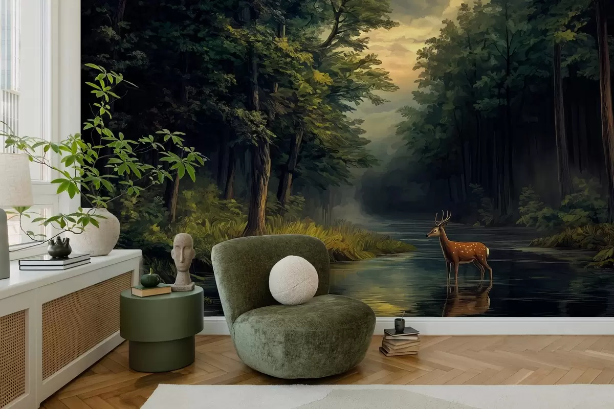 Wall murals Forest with deer and river in the style of Dutch oil painting Nr. w04072