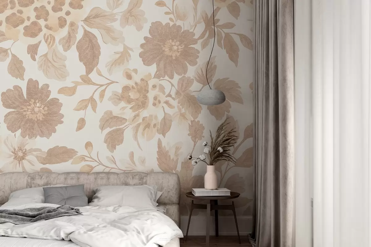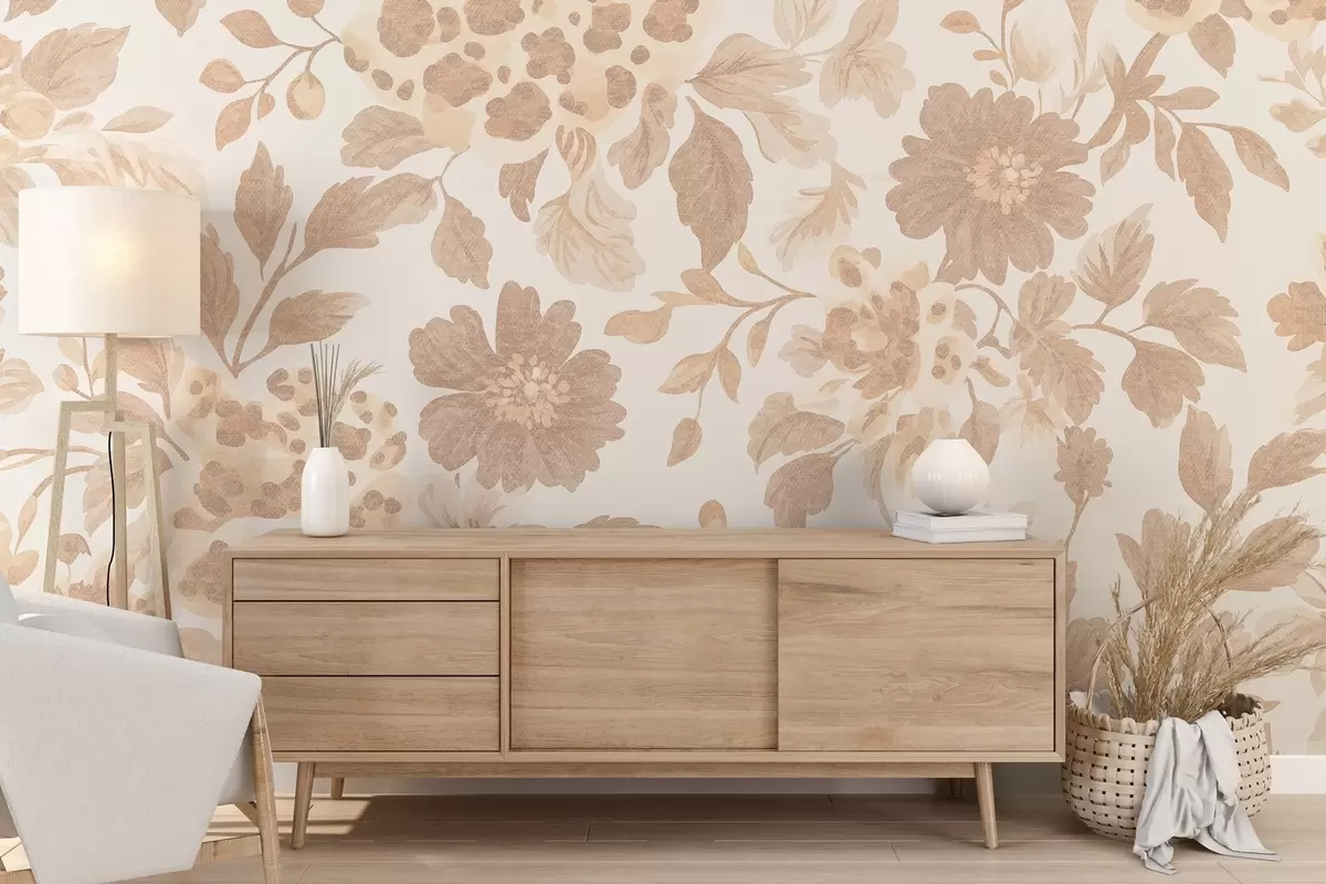 Wall murals Boho style flowers with leopard print, beige color Nr. w04114