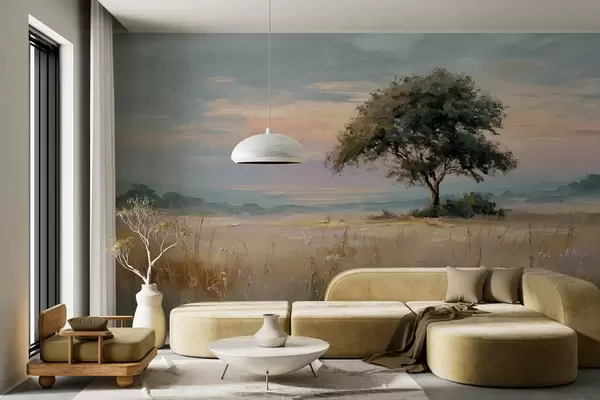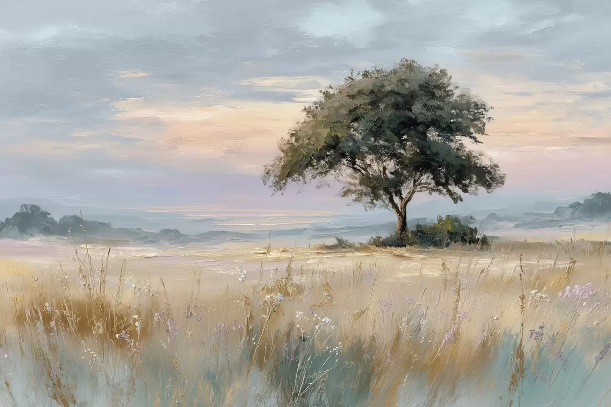Wall murals tree in the middle of a field in the style of oil painting Nr. w04206