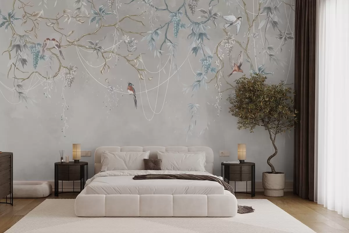 Wall murals Variant with a very light background and blue accents Nr. w04302v2