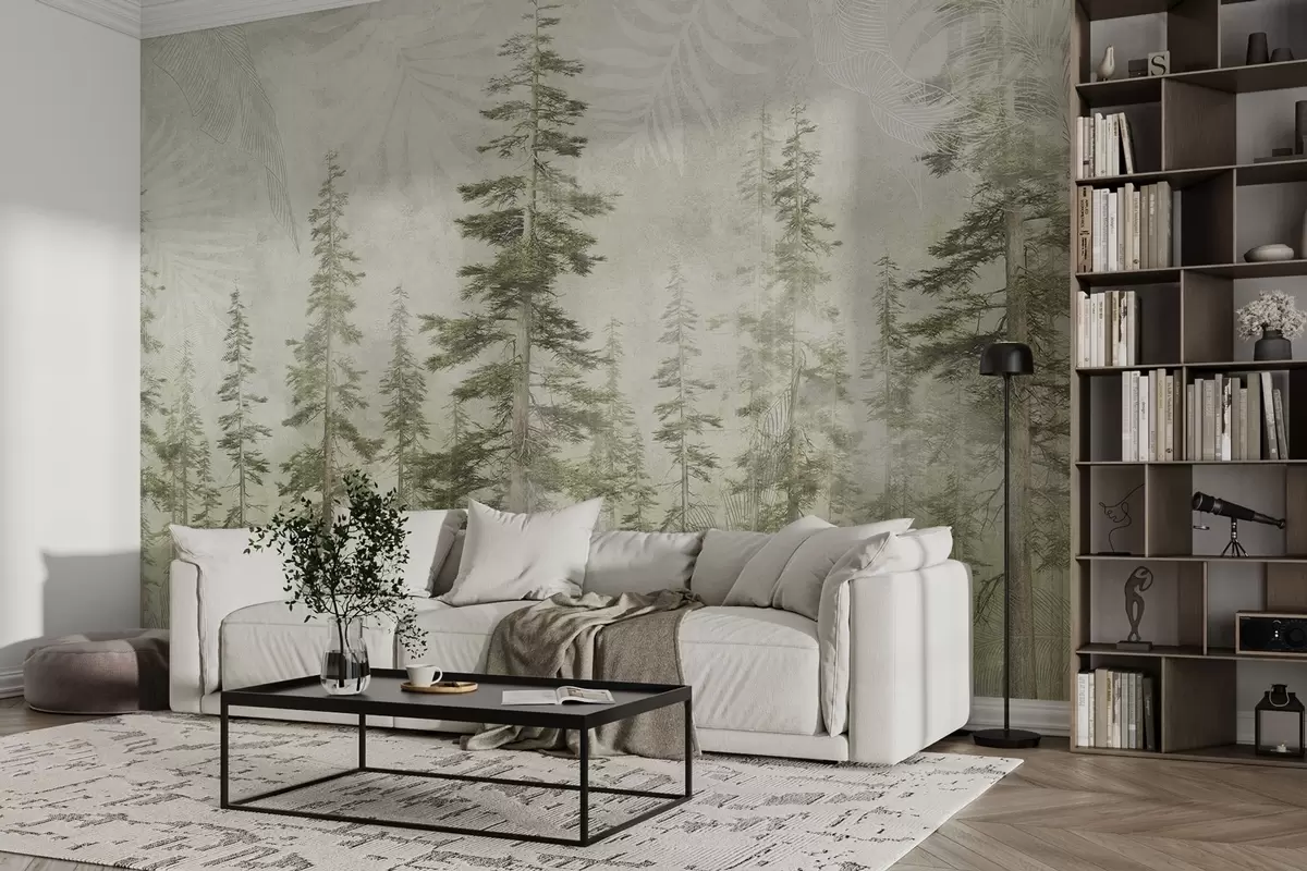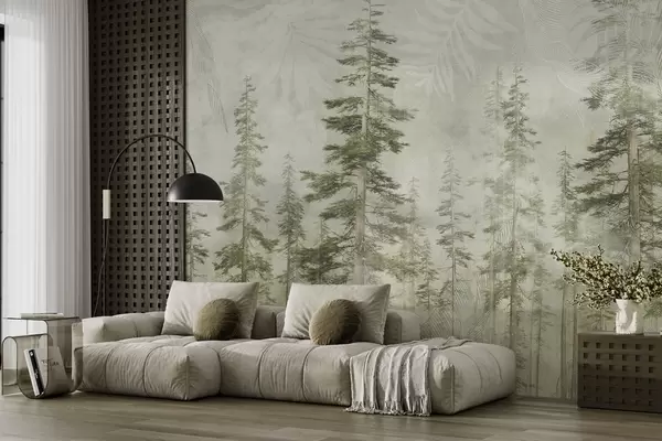 Wall murals Pine forest with vintage paper texture and fine patterns Nr. w04342
