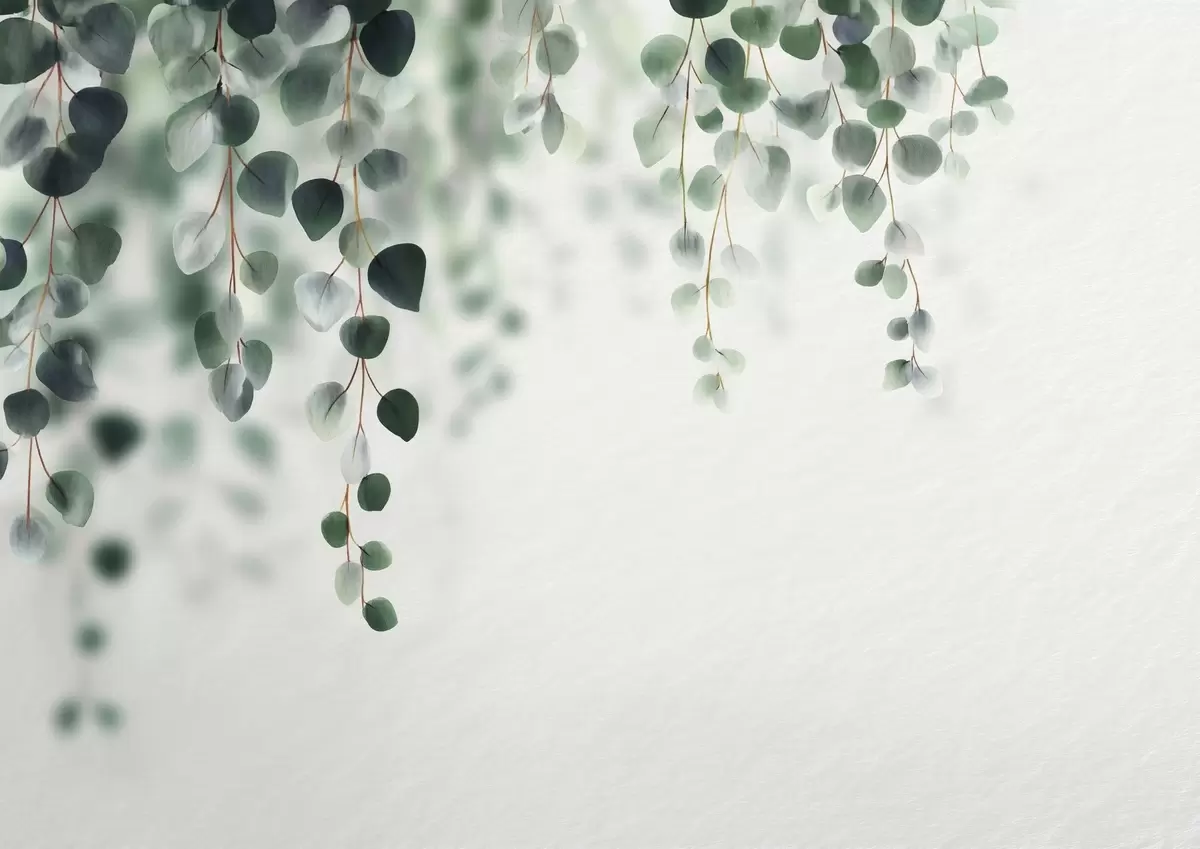 Wall murals Falling eucalyptus on a light background Nr. w04393