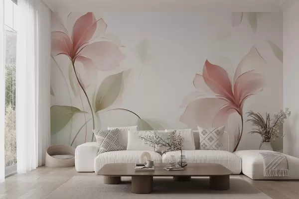 Wall murals Transparent flowers in delicate pink and pastel shades Nr. w04397v2