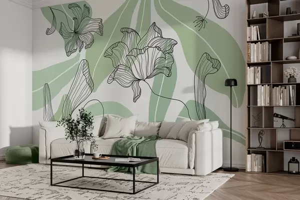 Wall murals abstract leaves and flowers in green tones Nr. w04499v1