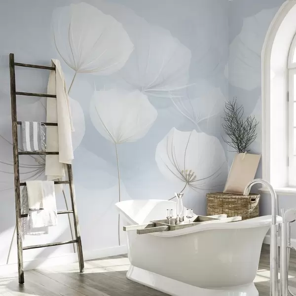 Wall murals Airy white flowers on a blue background Nr. w04580