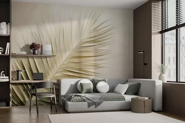 Wall murals Beige palm frond on soft textured background Nr. w04618
