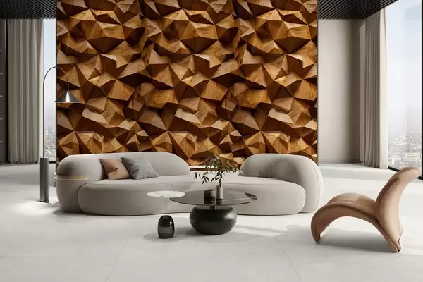 Wall murals imitation of an angular relief wall made of wood Nr. w04632