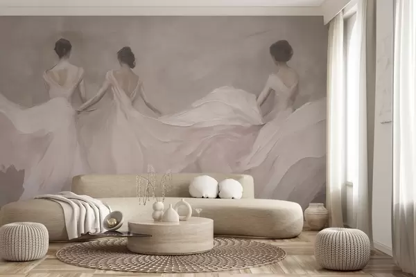 Wall murals Three women in pink dresses, flowing fabric, softness Nr. w04709