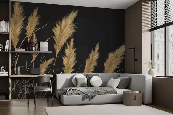 Wall murals Fluffy wheat spikes on a dark background Nr. w04734