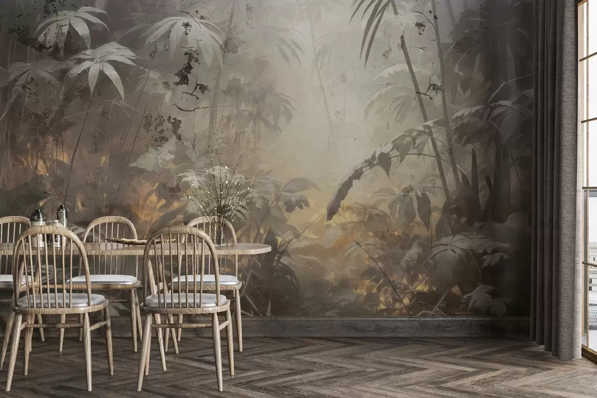 Wall murals Painted jungle behind a grunge concrete wall Nr. w04833