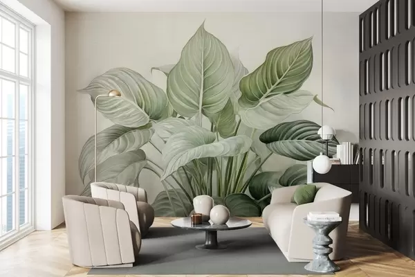 Wall murals Lush bush of green leaves on the wall Nr. w04835