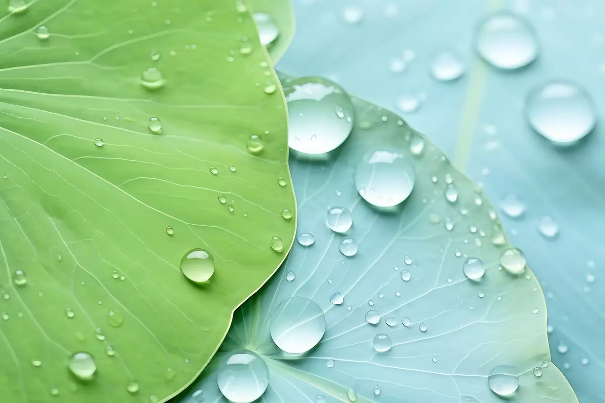 Wall murals Water drops on leaves macro watercolor Nr. w04838