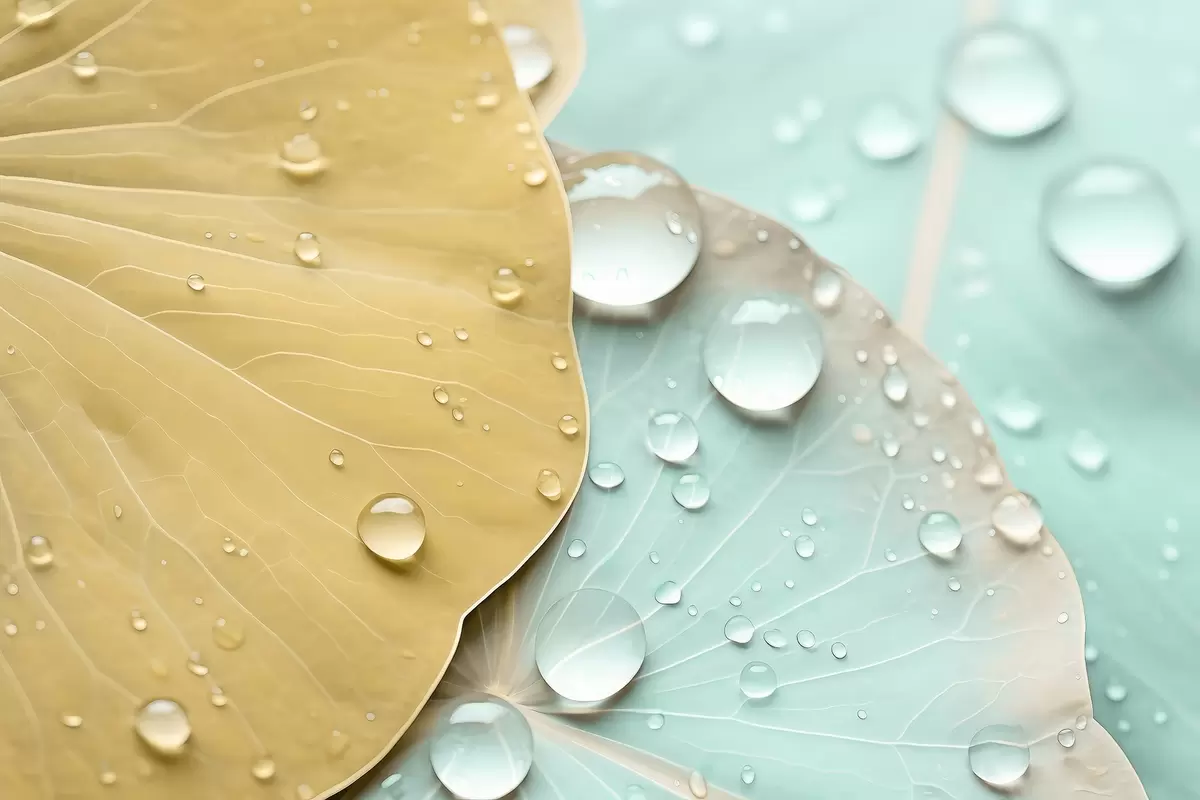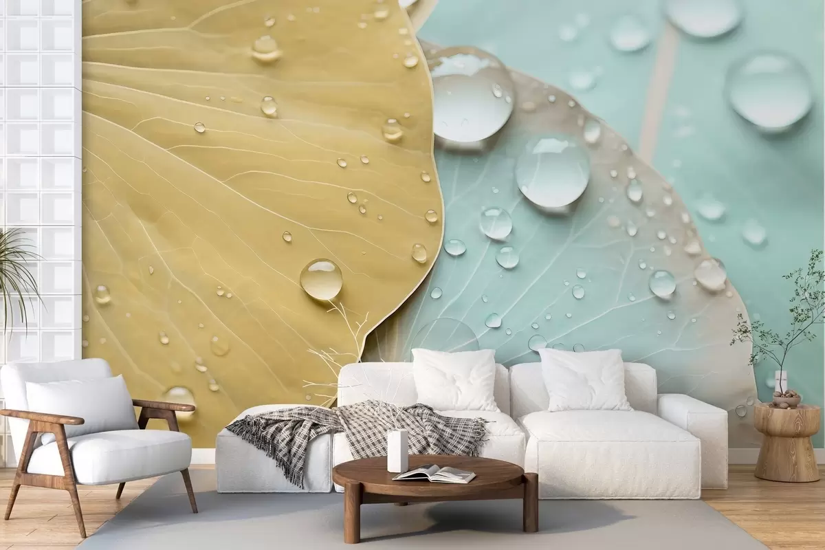 Wall murals Water drops on leaves macro watercolor Nr. w04838v1