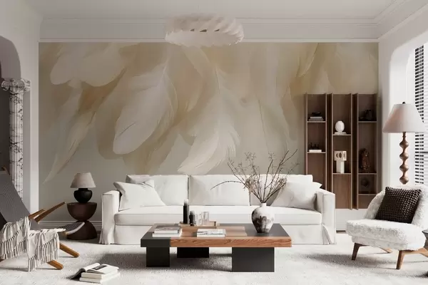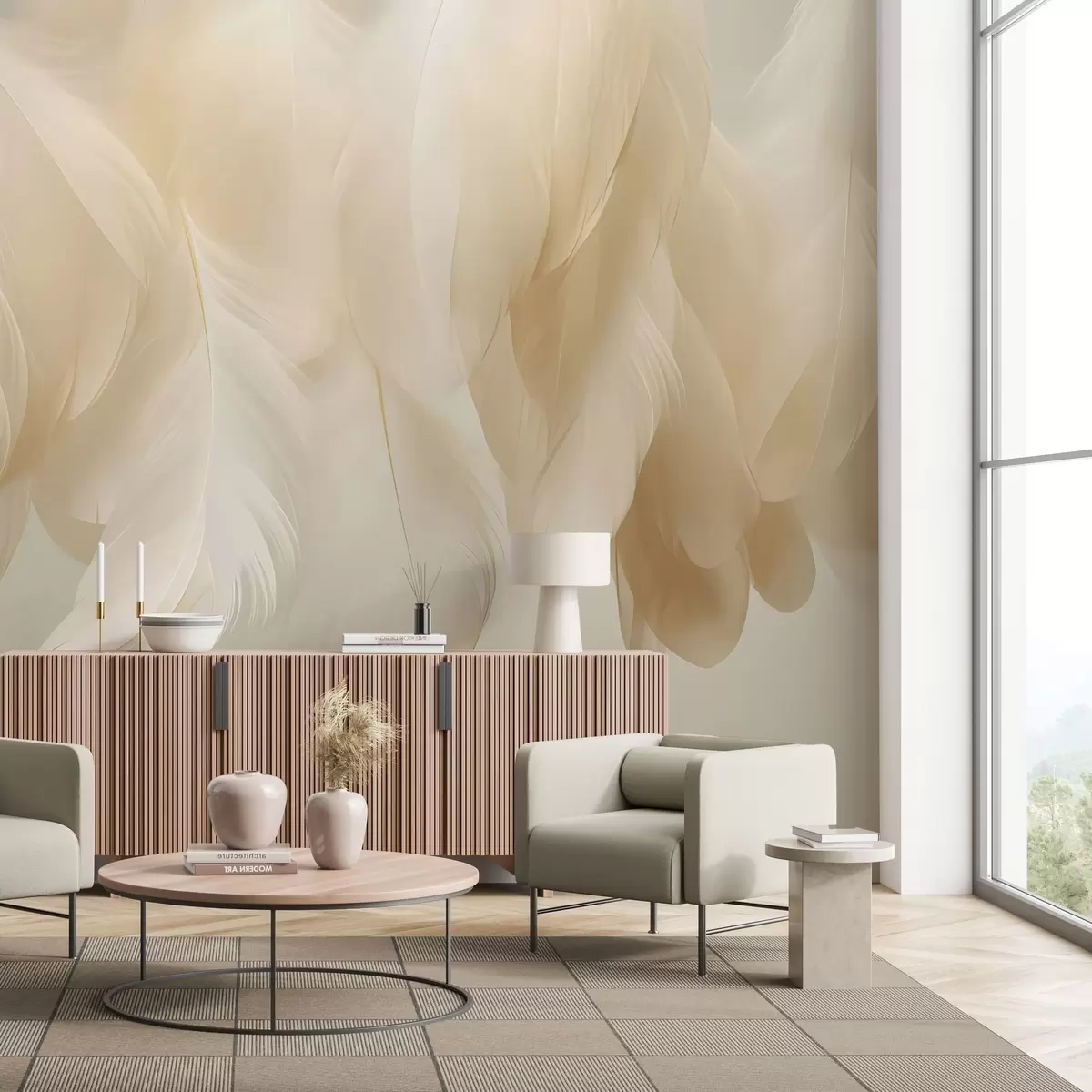 Wall murals Lush and delicate hanging feathers in soothing tones Nr. w04842