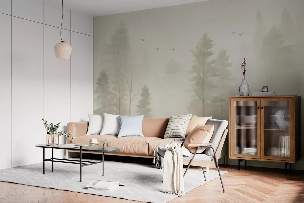 Wall murals watercolour-style air forest in beige tones Nr. w04872