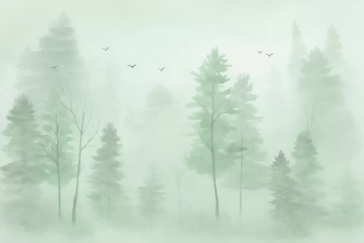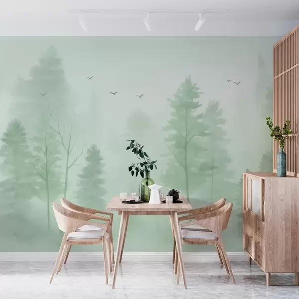 Wall murals watercolour-style aerial forest in green tones Nr. w04872v1