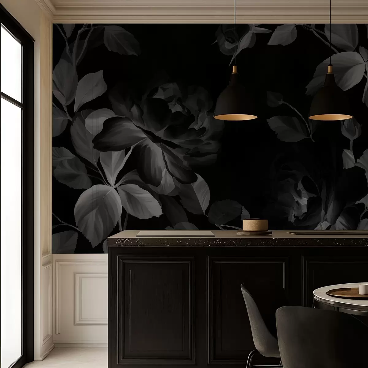Wall murals black and white picturesque roses in the style of oil painting Nr. w04873v1
