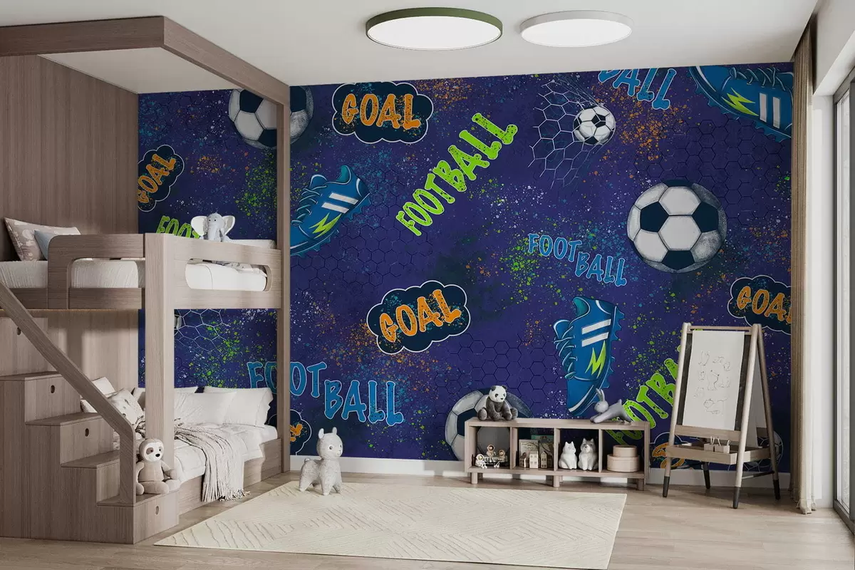 Wall murals Kids football pattern in dark blue tones Nr. w05037v3