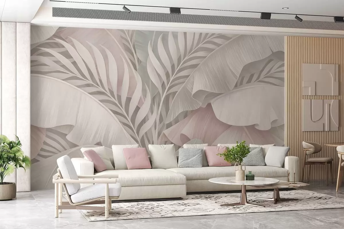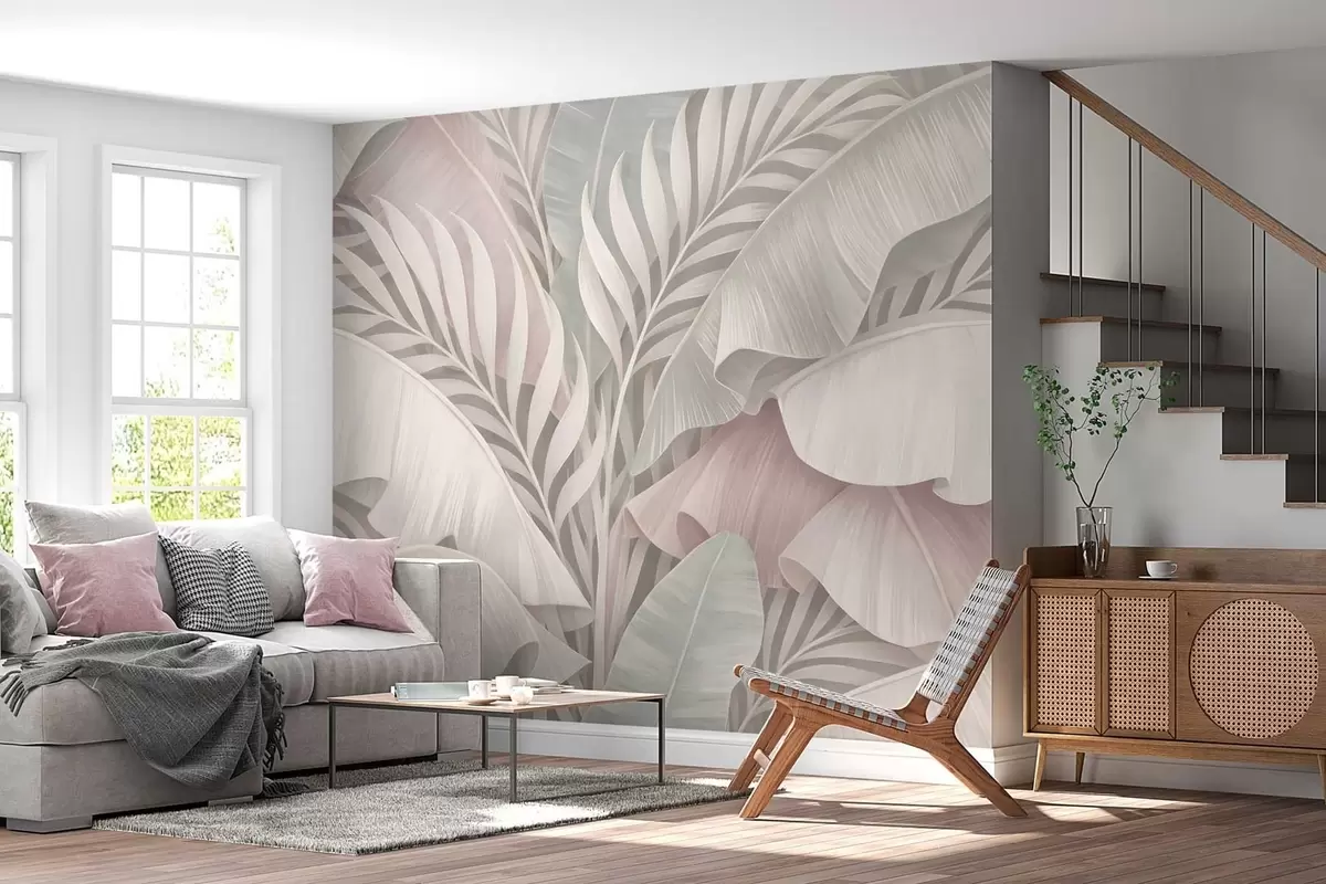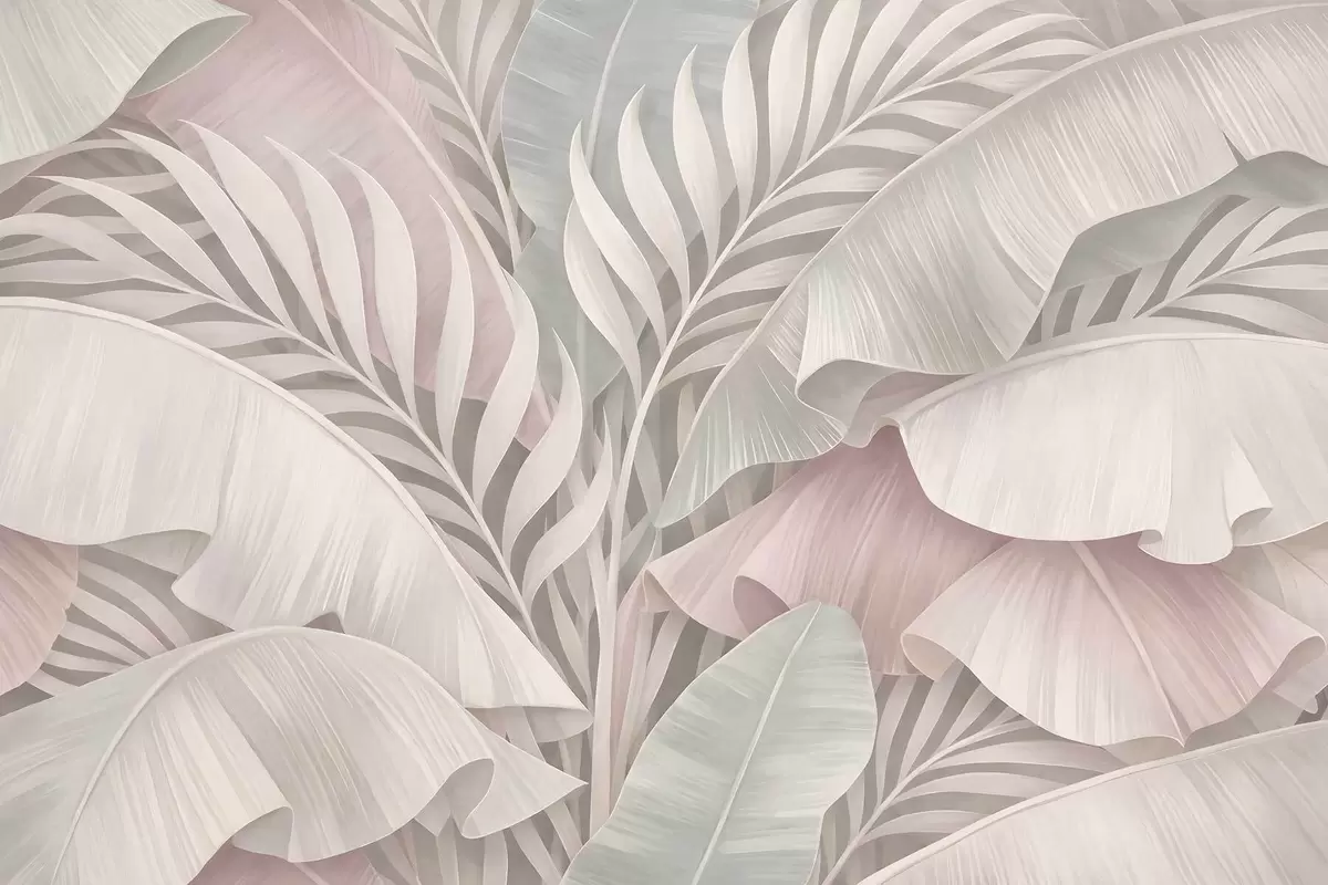 Wall murals large tropical leaves in cool shades of pink and grey Nr. w05062v1