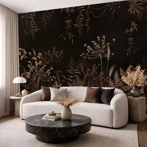 Wall murals Dark botanical pattern with flowers and grasses Nr. w05092v3