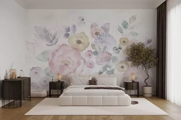 Wall murals Soft watercolor composition with flowers and leaves Nr. w05093