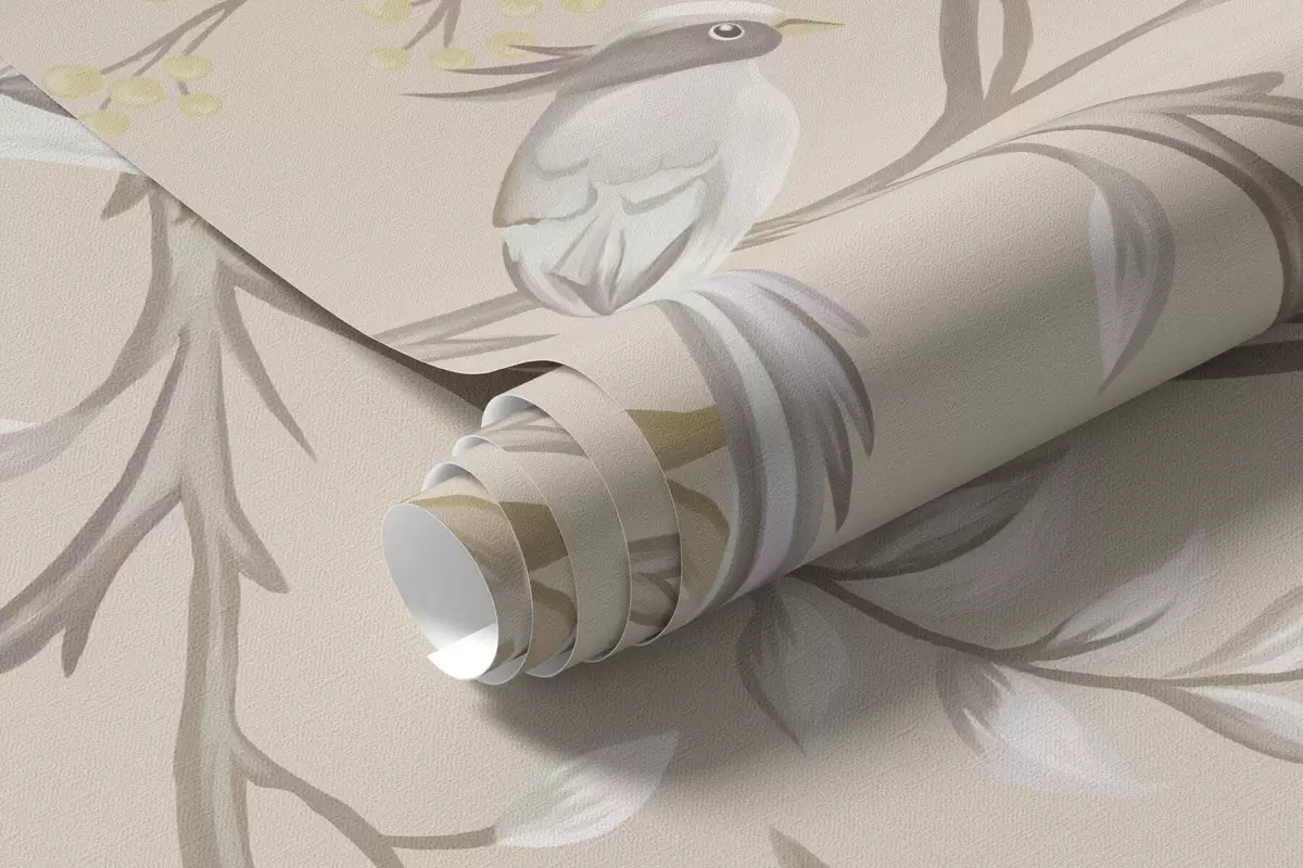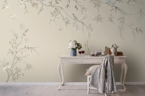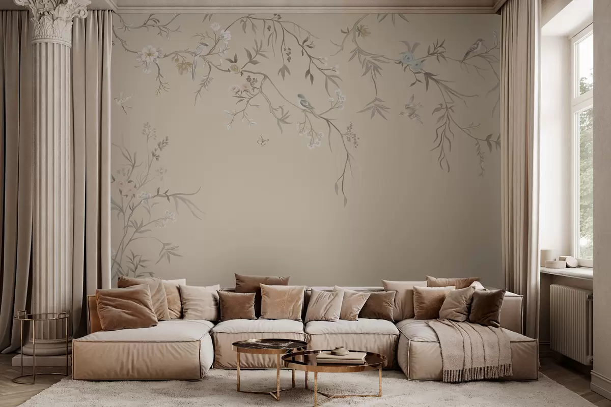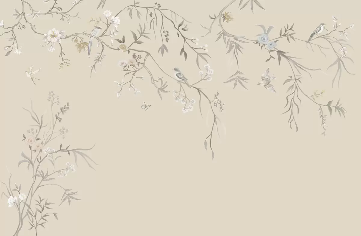 Wall murals Light flowers and birds on a pastel background Nr. w05127v2