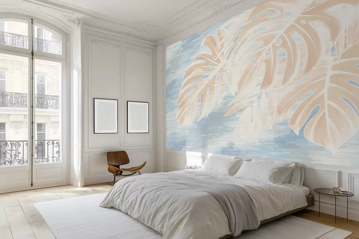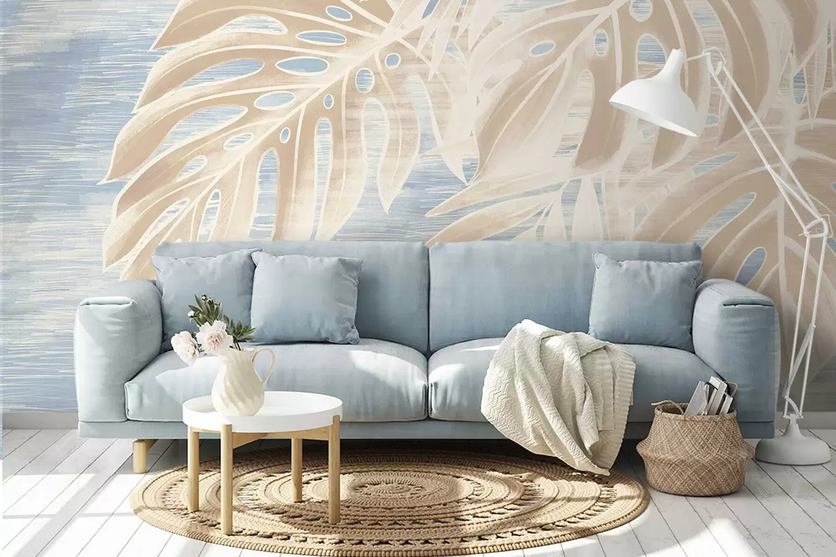 Wall murals Abstract leaves in warm beige tones on a light background Nr. w05130