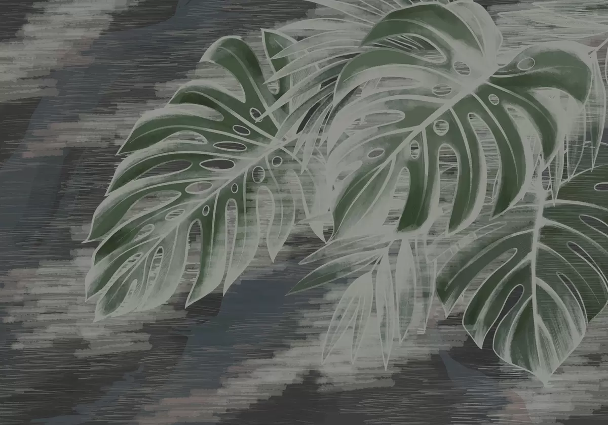 Wall murals Dark green leaves on a textured dark background Nr. w05130v4