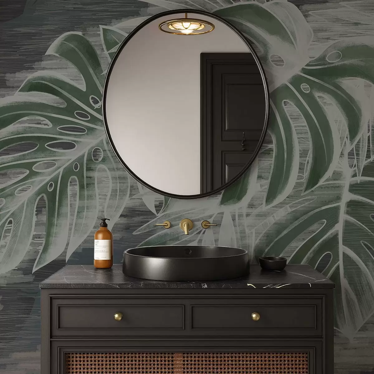 wall murals Dark green leaves on a textured dark background w05130v4
