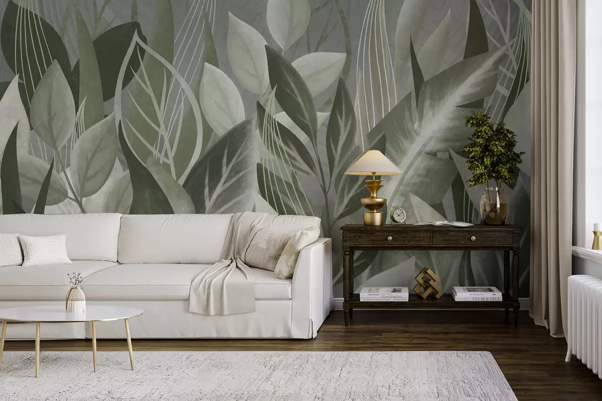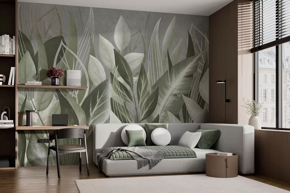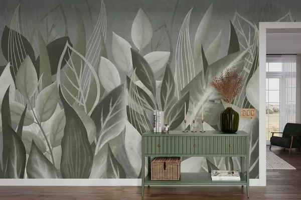 Wall murals Abstract leaves in gray-green shades Nr. w05148v1