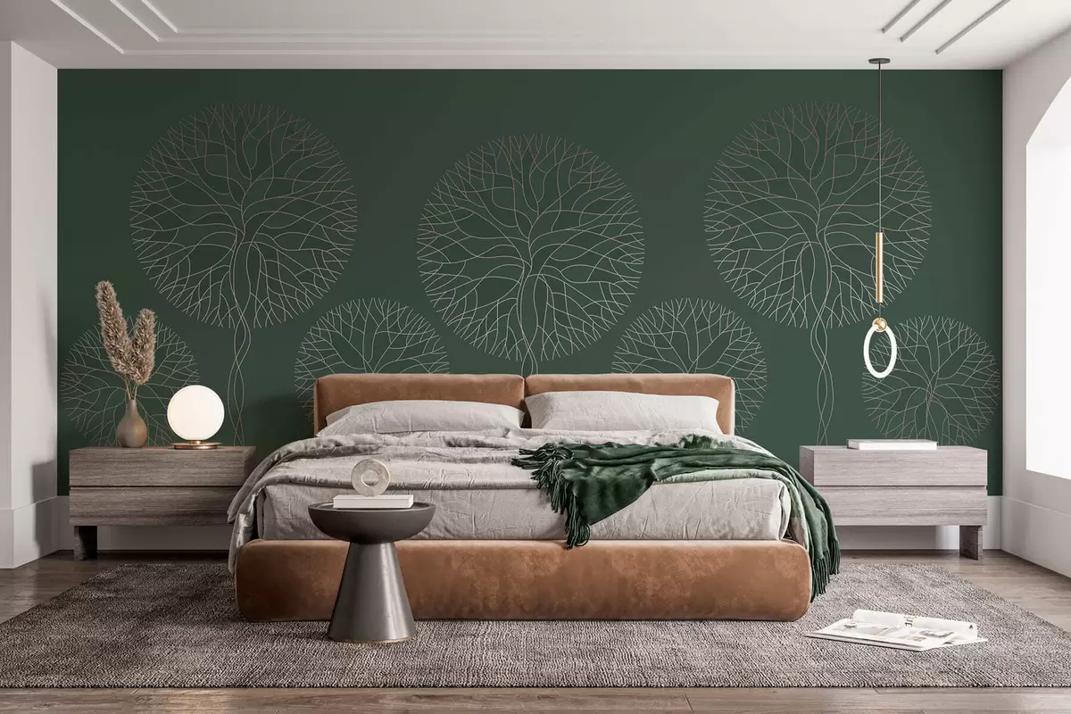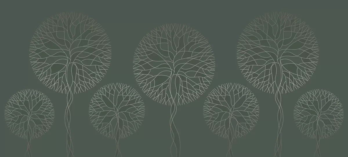 Wall murals Fantasy linear trees with lush crowns in elegant dark green tones Nr. w05213v2