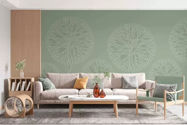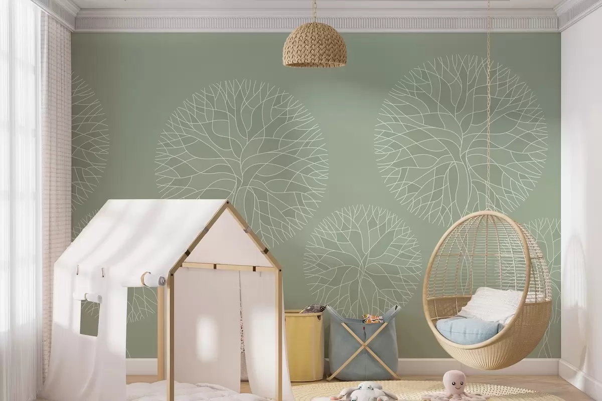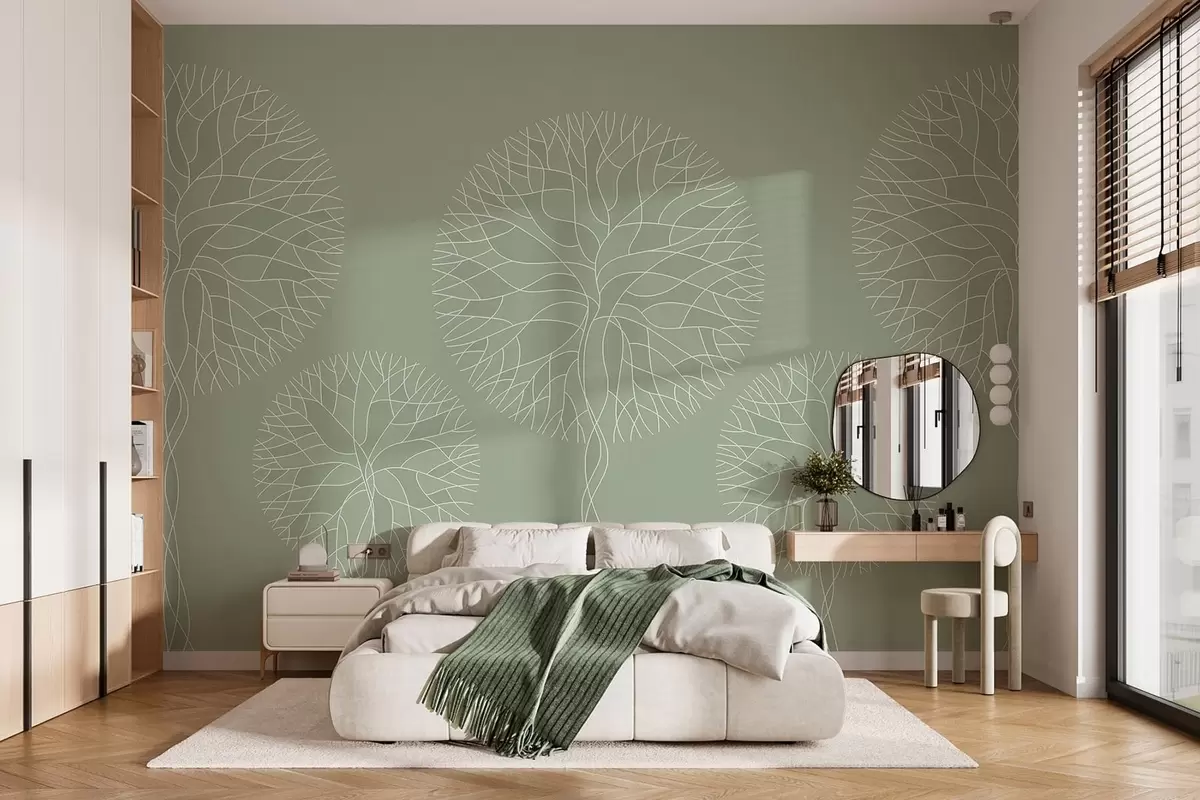 Wall murals Fantasy linear trees with lush crowns in light green tones Nr. w05213v6