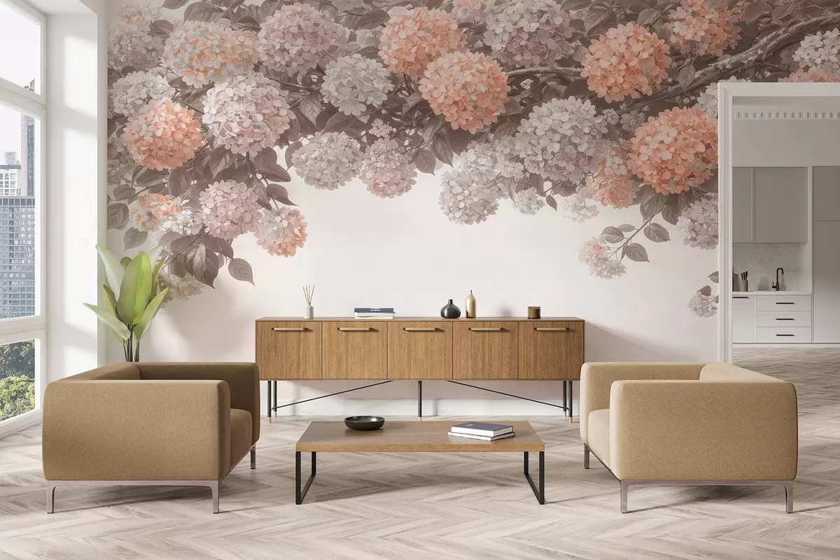 Wall murals Painted hydrangeas hang down Nr. w05250v1