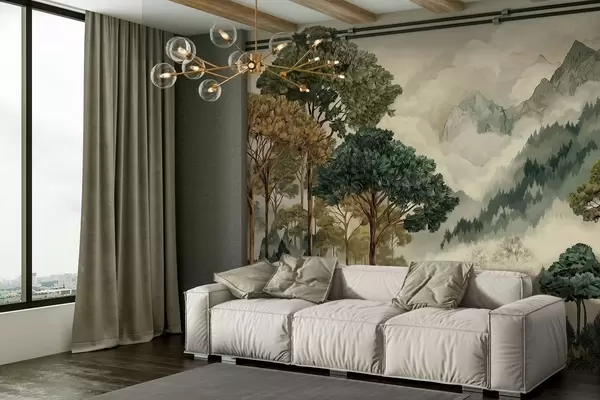 Wall murals Forest with tall trees in misty mountains Nr. w05410