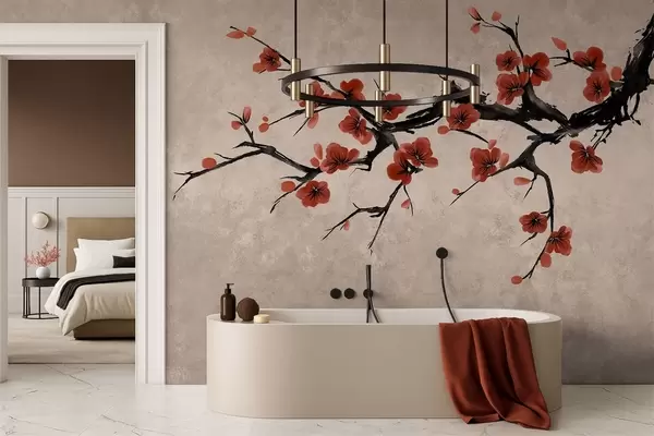 wall murals Blossom branch in eastern style on beige background w05425v4