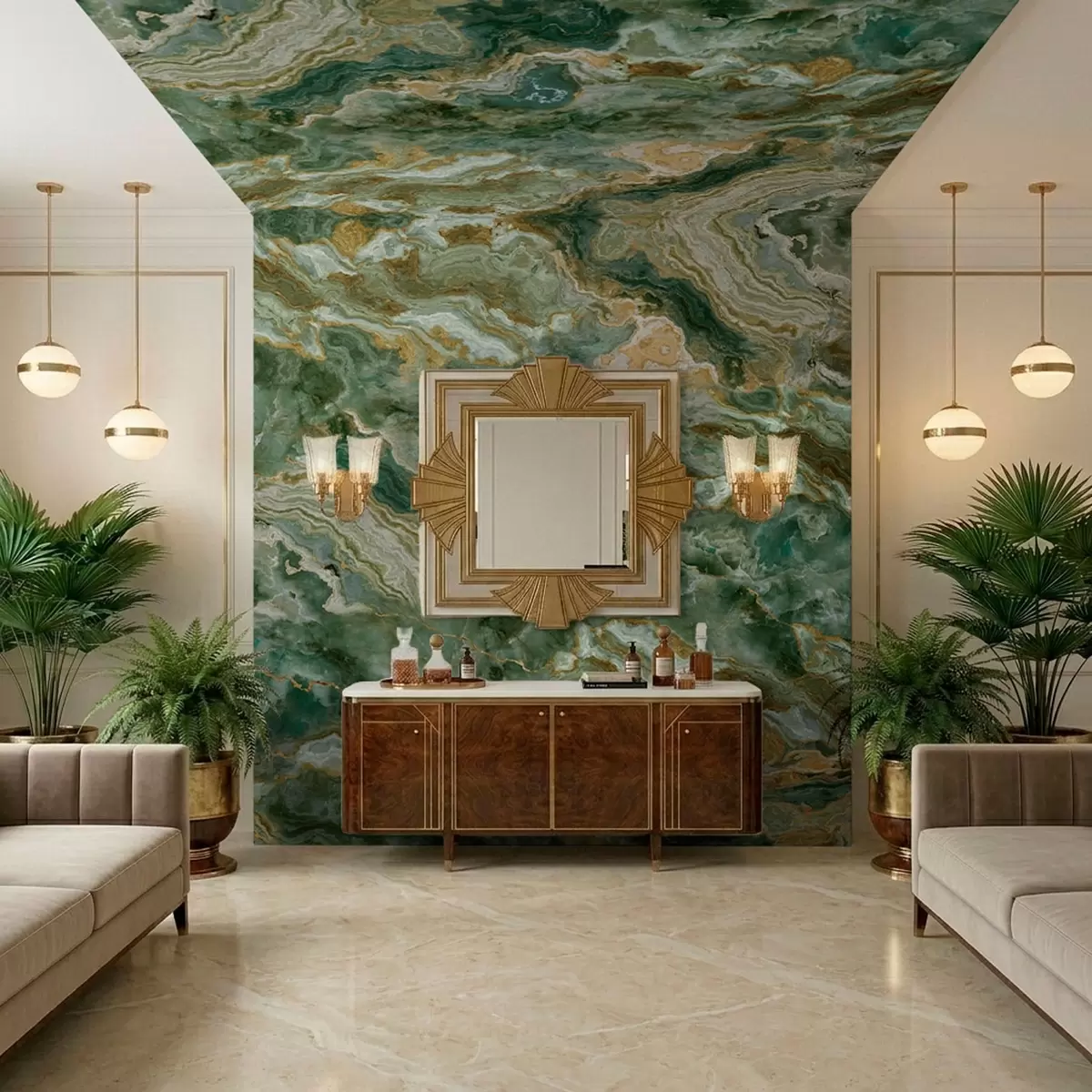 Wall murals Green onyx texture with flowing layered veins Nr. w05429