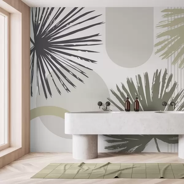 Wall murals Abstraction with plant and geometric silhouettes Nr. w05505v2